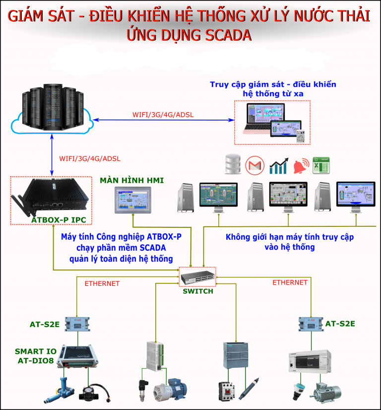 Normally, wastewater treatment plants are large, divided into many areas. Therefore, the application of SCADA system is very important for the purpose of remote system monitoring - saving costs - optimizing human resources.