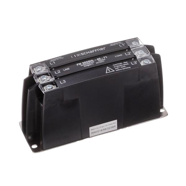 Schaffner FN3025HL-40-71 ຕົວກັນສະຫນອງໄຟຟ້າສາຍພະລັງງານ 3 ຟເຟສ ກອງພາສຕິກກັນສະຫນອງ 520VAC, ຕິດຕັ້ງໃນກະແຈ, 40A | EMIN.COM.LA