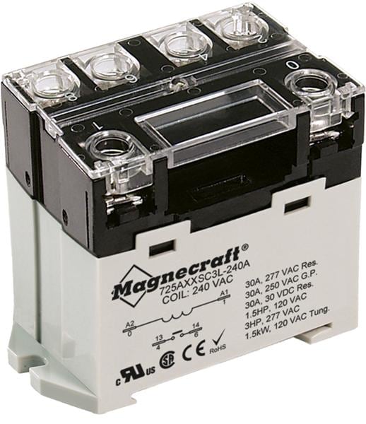 Schneider Electric Relays 725AXXSC3ML-120A ຣີເລຍພວງງານມາດຕະຖານ SPST-NO 30 A, ຕົວຕໍ່ສູດດວງສອງ | EMIN.COM.LA