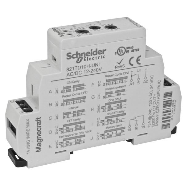 Features: B - Repeat Cycle (Starting Off), C - Interval (Power On), D - Off Delay (S Break), E - Retriggerable One Shot, F - Repeat Cycle (Starting On), G - Pulse Generator, H - One Shot, I - On/Off Delay (S Make/Break), J - Memory Hold (S Make), A - On Delay (Power On)