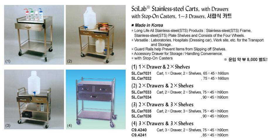SciLab C9.4240 ກະຕ່າສະແຕນເລດ (3×Drawer & 2×Shelves, 75×45×h90cm) | EMIN.COM.LA