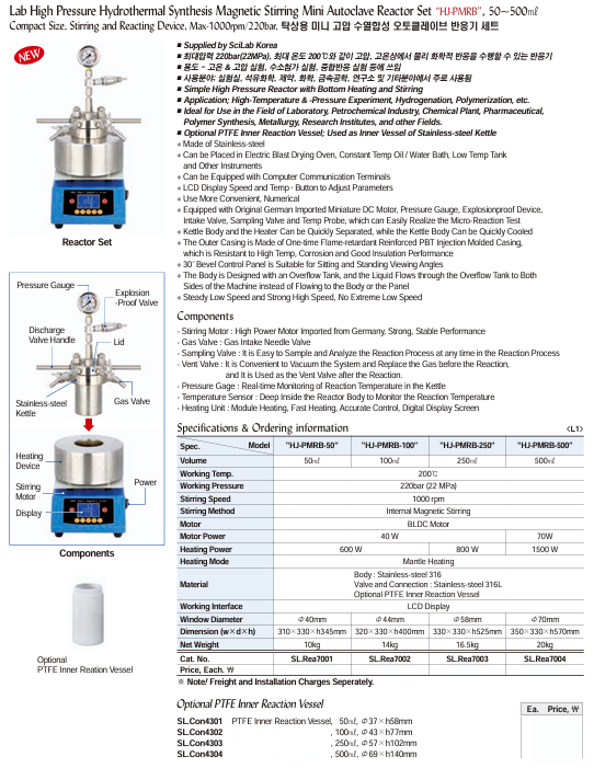 SciLab HJ-PMRB-500 Lab ຄວາມດັນສູງ Hydrothermal Synthesis Magnetic Stirring Mini Autoclave Reactor Set (500ml) | EMIN.COM.LA