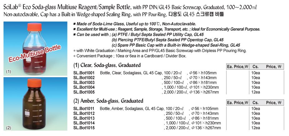 SciLab SL.Bot1015 Eco Multiuse ຂວດ (Sodaglass, GL45Cap, Amber, 2000ml) | EMIN.COM.LA
