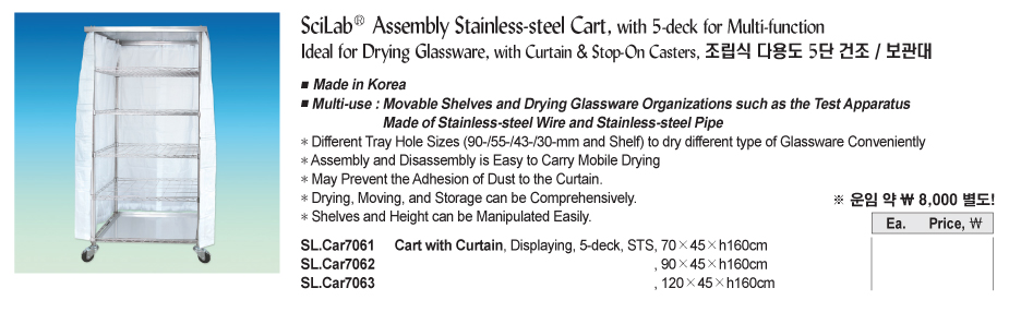 SciLab SL.Car7063 ໂຄງຮ່າງການປະກອບສະແຕນເລດ (Curtain, 5-deck, 120 x 45 x h160 cm) | EMIN.COM.LA
