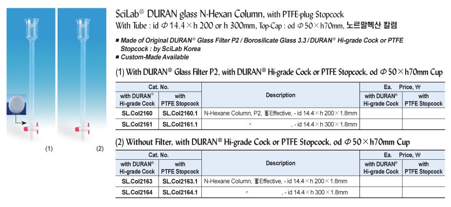 SciLab SL.Col2160.1 ແກ້ວ DURAN N-Hexan ຖັນ (Eco-Cock, P2, Effective, h200mm) | EMIN.COM.LA