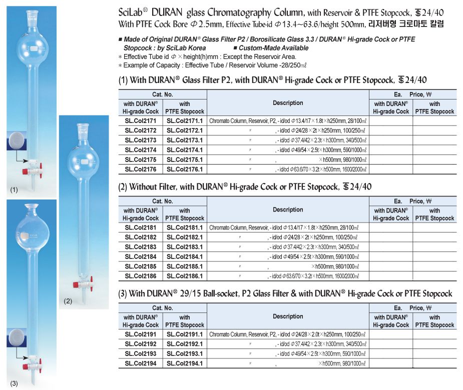 SciLab SL.Col2194.1 ຖັນ Chromatography ແກ້ວ DURAN (Reservoir, SciLab Cock, P2 Effictive, 980/1000ml) | EMIN.COM.LA