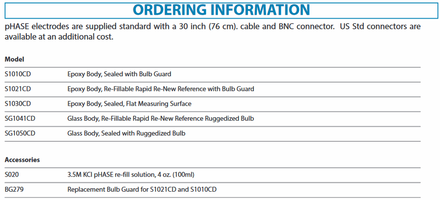 SENSOREX SG1050CD PH pHASE Electrode (0~14 PH, glass, sealed) | EMIN.COM.LA