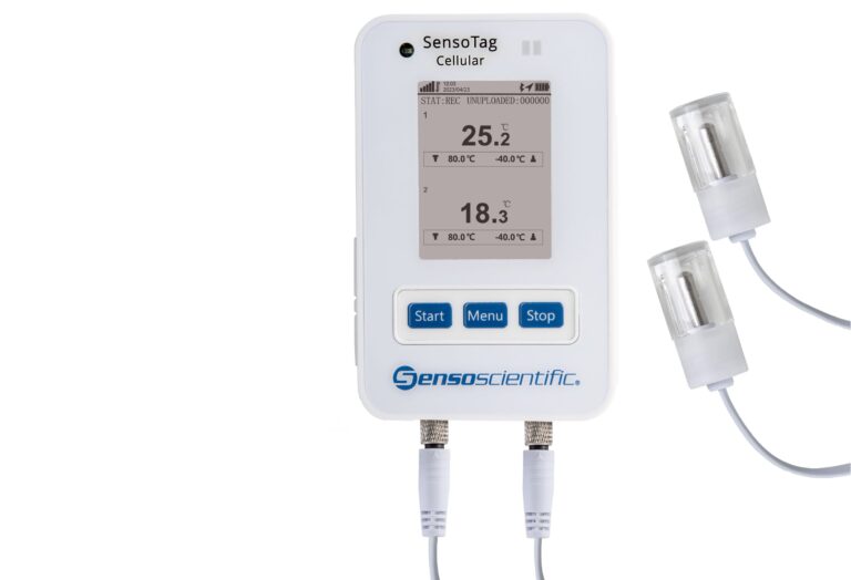 SensoScientific SensoTag Cellular Data Loggers are advanced in-transit monitoring solutions that leverage IoT and 4G cellular technology for real-time monitoring, alarming, and reporting. Designed for cold chain logistics and high-transport applications, these compact devices feature a large display for easy visibility of current, min/max readings, battery life, and connectivity status. Equipped with digital temperature sensors, they are ideal for vaccine monitoring and meet CDC/VFC approval standards. The SensoTag-C-B11 models include thermal buffers and audible alarms for added reliability. Each device stores over 100,000 readings locally with unlimited cloud storage via the SensoScientific Cloud, ensuring secure, seamless data management.