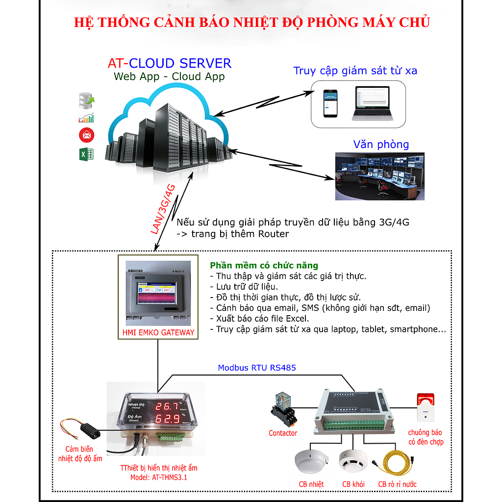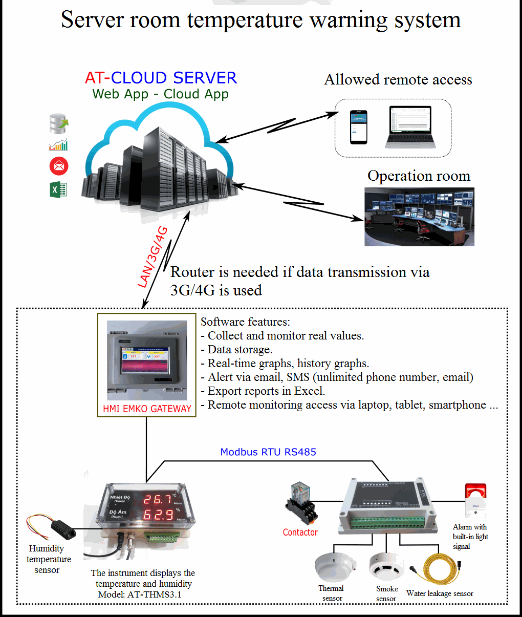 - Meet the criteria of the authorities on standard supervision requirements for cold storage, pharmaceutical warehouses, vaccine cabinets, server rooms ... in terms of temperature and humidity. hardware and software