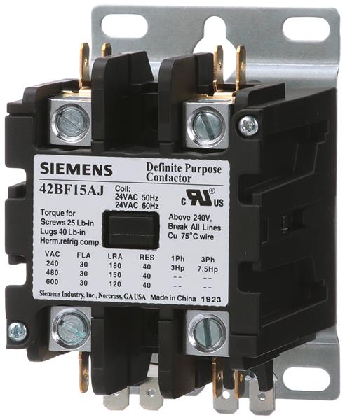 SIEMENS 42BF15AF ອຸປະກອນຕິດຕໍ່ໄຟຟ້າອີເລັກໂຕໂມຄານິກ Contactor, 42DP,30A,2P,Open,120V | EMIN.COM.LA