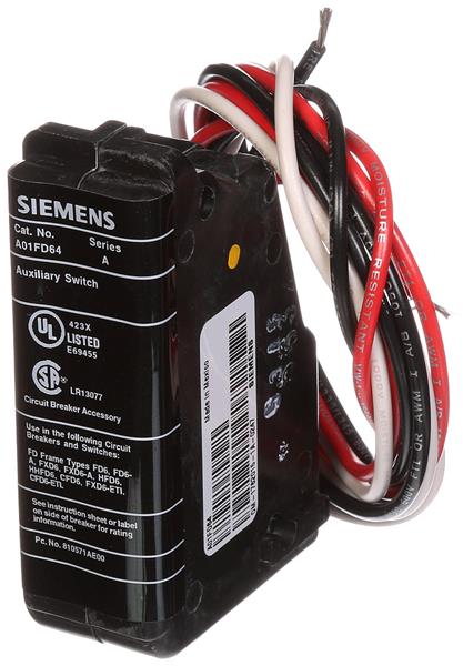 SIEMENS A01FD64 ສະຫນັບສະຫນູນສະຫນັບສະຫນູນການປິດກະຕ່າຍ BREAKER FD 480VAC AUX SWITCH ACC | EMIN.COM.LA