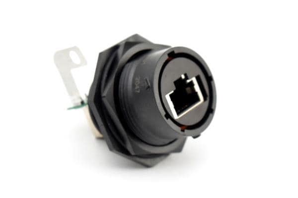 Amphenol SINE Systems RTS718NRJ03-U1 ປະຕູຮັບສະຫນອງຮູບແບບ Modular, ແນວກະດູກ Jam Nut, RJ45 (8 ຕຳແໜ່ງ) ມີກະດູກ Coupling ທີ່ມີຄວາມທົນທານສູງ, ຢາງຊິໂລນ Seal