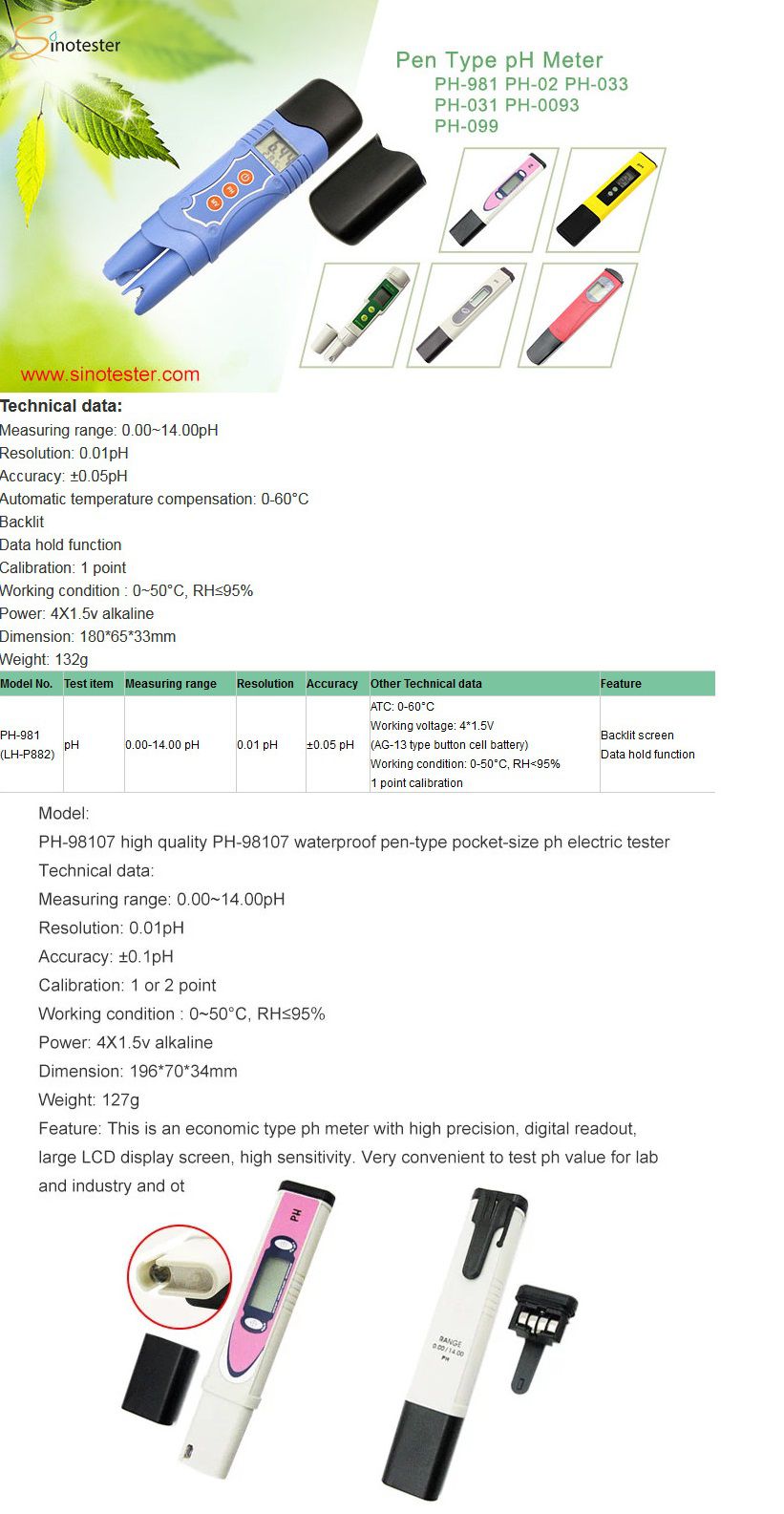 Sinotester PH-981 ເຄື່ອງວັດ pH ປະເພດປາກກາ (0.0~14.0pH, 0.01pH) | EMIN.COM.LA