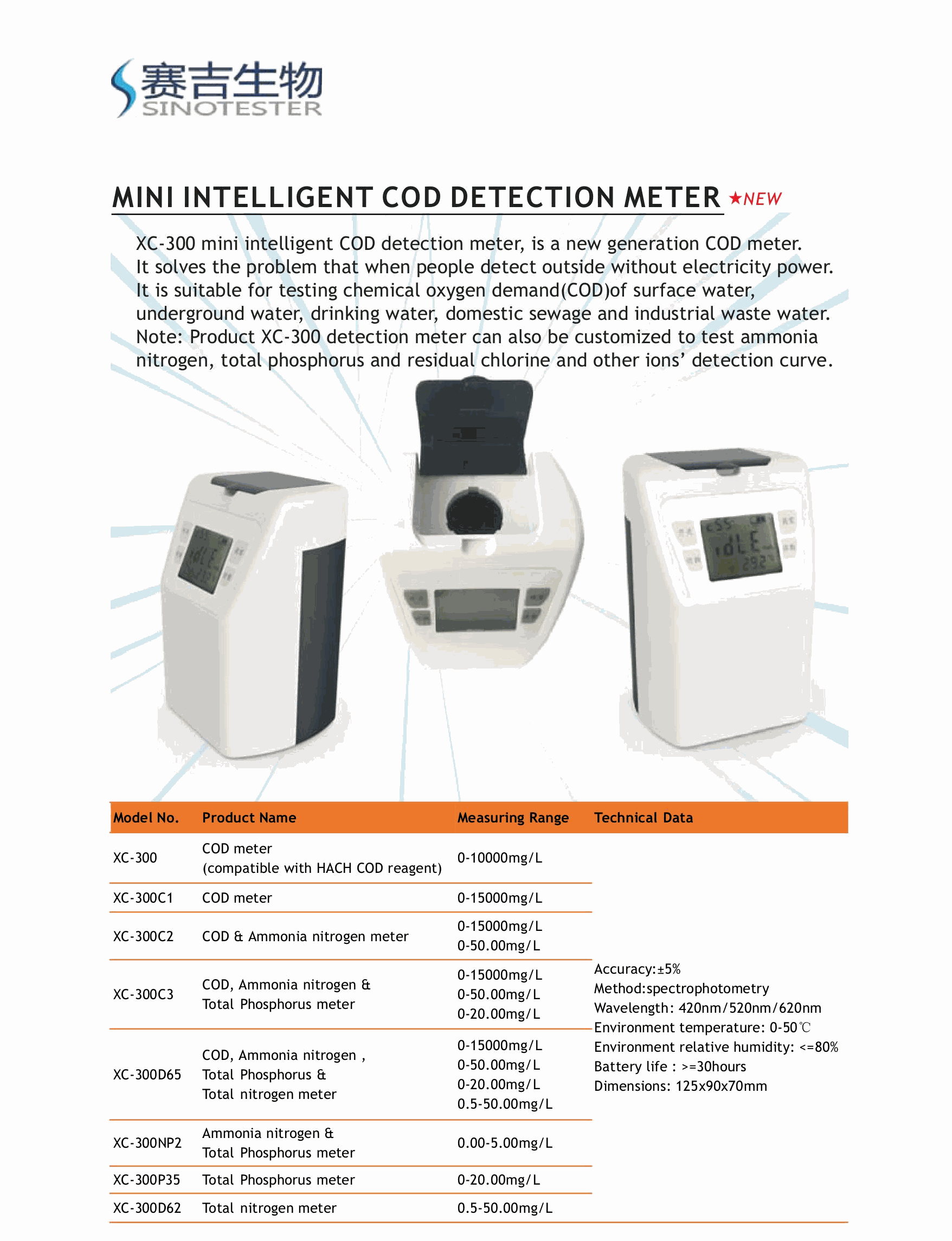 Sinotester XC-300 ເຄື່ອງວິເຄາະ COD (15~10000mg/L) | EMIN.COM.LA