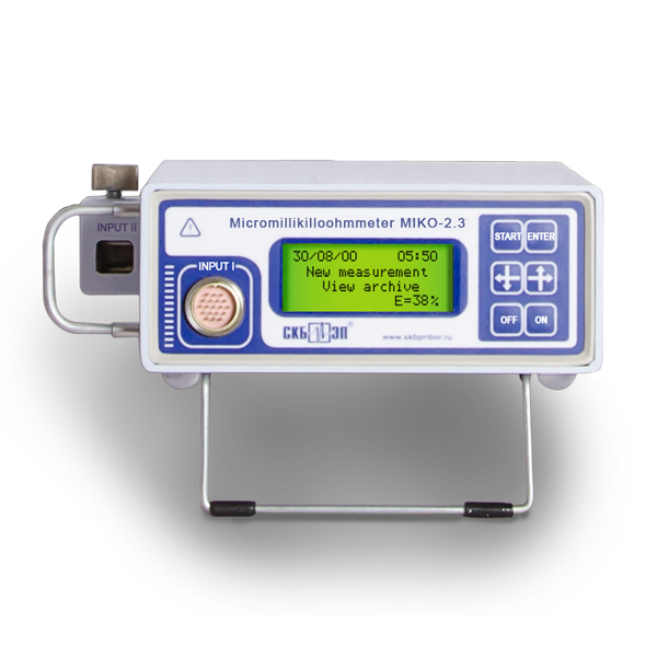 MIKO-2.3 surpasses all foreign- and home-produced microohmmeters. The closest foreign analogue microohmeter with the current of 500A has the weight of 7.5 kg and mains supply. At the same time MIKO-2.3 with its weight of only 2.7 kg produces current of 1,000А. It is particularly true about dead-tank circuit breakers of MKP and U type, the contact circuit of which contains up to eight series-connected arcing contacts and two main contacts which means that they are more sensitive to corrosion and repair labour input is bigger due to the great amount of oil in the tank.
