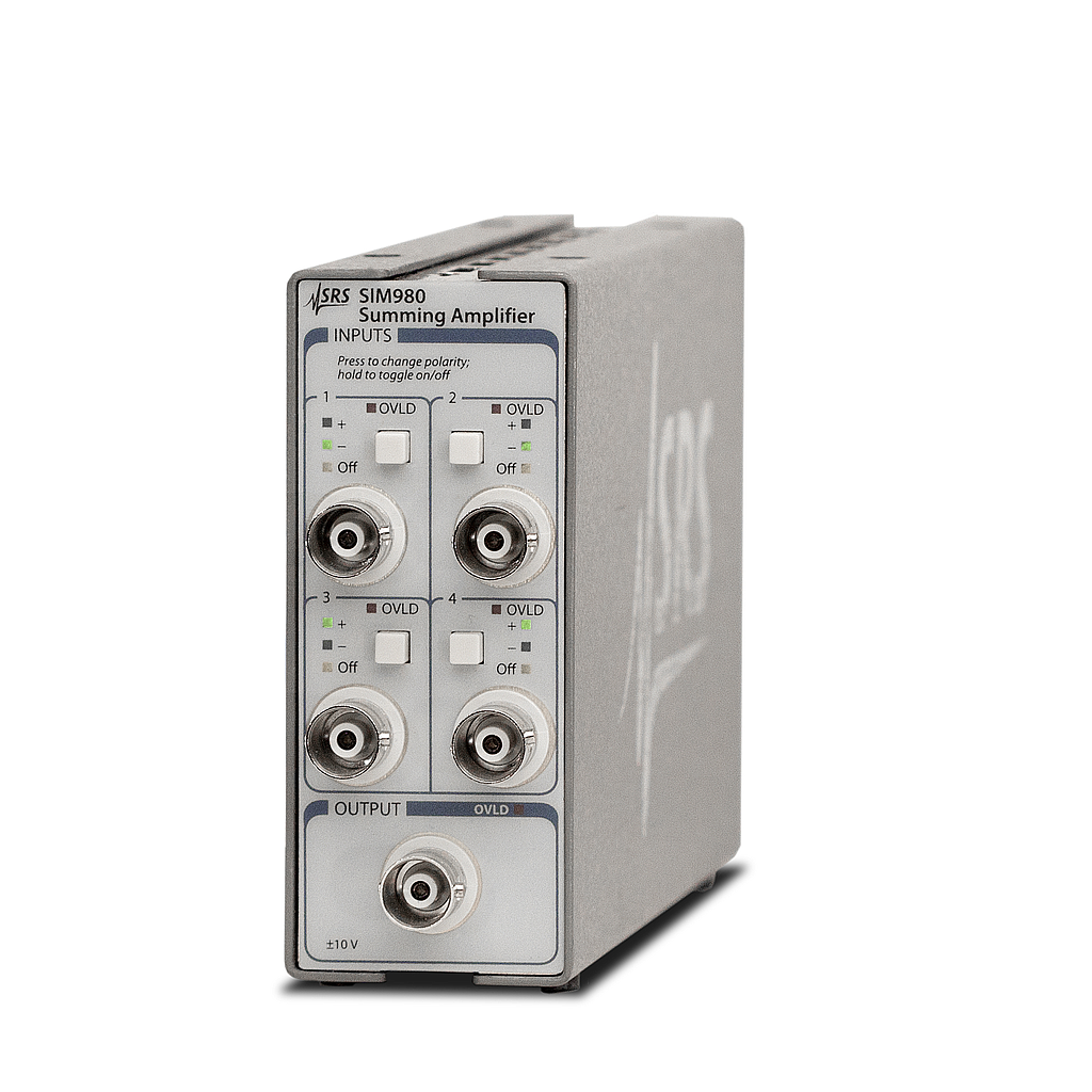 Power (max.): Power supplied by the SIM900 Mainframe, or optionally by a user-supplied DC power supply (±15 V and +5 V).