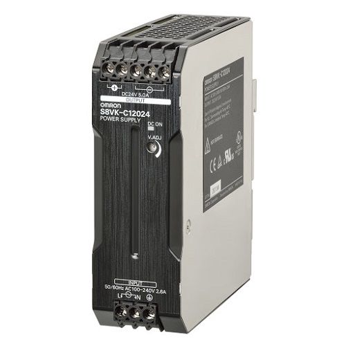 One of the typical product codes is OMRON S8VK-C12024. This device has a capacity of 120 W, an output voltage of 24 V and a current of 5 A. The power supply is capable of operating in a wide input voltage range from 100 to 240 VAC or from 90 to 350 VDC, helping the system maintain stability even when the voltage fluctuates.