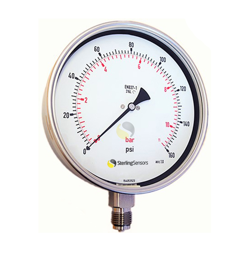 Sterling Sensors RCh16031B ເຄື່ອງວັດຄວາມດັນສະແຕນເລດ 160 ມມ (0-1 bar (0-15 PSI), 1/2" BSP Parallel) | EMIN.COM.LA