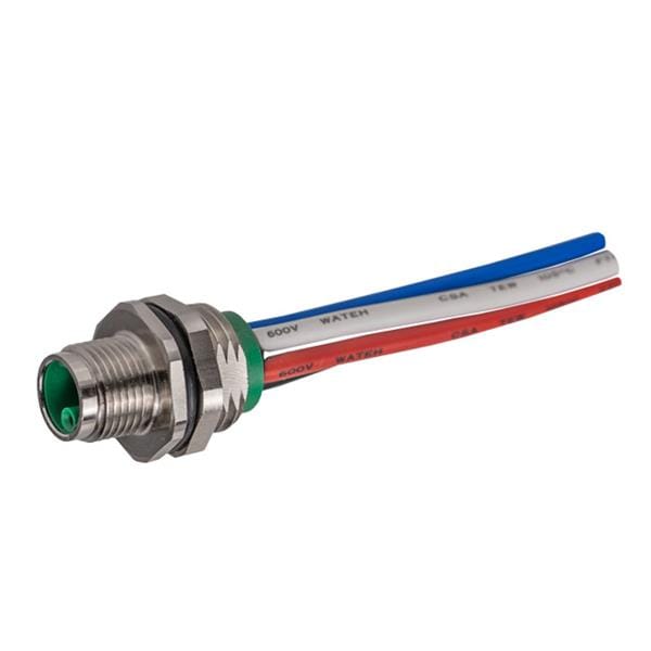 Stewart Connector SS-12500-001 ຕົວເຊື່ອມ M12 K-Code ຕົວເຊື່ອມຜູ້ຊາຍຕິດຕັ້ງບົດປ່ອງ ກັບສາຍໄຟ 7.5 ນິ້ວ 4 ຕິດຕໍ່ IP68 | EMIN.COM.LA