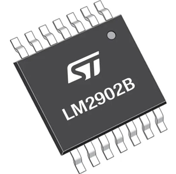 STMicroelectronics LM2902BYPT ເອັັບພລິຟໄອເຟີຣເຊີຂະໜາດລົດຍນະ, ພະລັງງານຕ່ຳ, ສີ່ຕົວ, ເອັັບພລິຟໄອເຟີຣ 36 V | EMIN.COM.LA
