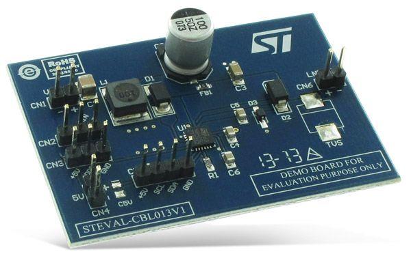 STMicroelectronics STEVAL-CBL013V1 ຕົວຄວບຄຸມແລະຈັດຫຼຸດແຮງແສງສະຕຣີມລະດັບສະຕຣີມ Linear Voltage Regulator Single LNB supply and control IC DiSEqC 1.x compliant based on the LNBH25L