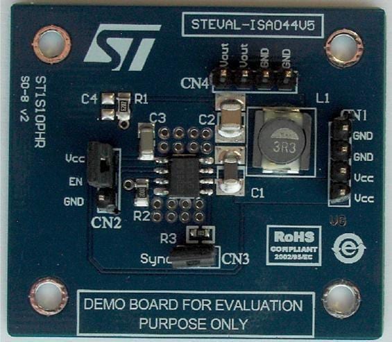 STMicroelectronics STEVAL-ISA044V5 ຕົວຄວບຄຸມແຮງໂຮງ - ຕົວຄວບຄຸມສະໄວ ST1S10 3A 900kHz ແປງກະສົດ DC Eval BRD | EMIN.COM.LA