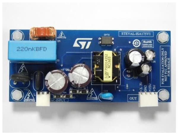 STMicroelectronics STEVAL-ISA175V1 ຕົວຄວບຄຸມດ້ານຕົ້ນ/ດ້ານທີ່ສອງ AC/DC ອອຟຟລາຍ - Flyback 9.4 W, 15 V-5 V-3.3 V, ໂຄນເວີຕ້ອງອອກສາຍສົງສ່ວນສະແດງຜົນສໍາລັບເຄື່ອງມືວັດສະຫຼຸບອັດຕະໂນມັດແລະລະບົບເສັ້ນພະລັງງານໃຊ້ VIPER26HD