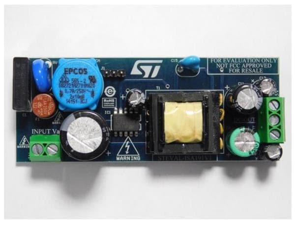 STMicroelectronics STEVAL-ISA191V1 ຕົວຄວບຄຸມດ້ານຕົ້ນ/ດ້ານທີ່ສອງ AC/DC ອອບໄລນ - Flyback 5 V - 12 V, 15 W ຕົວແປກກັບຄືນທີ່ມີອອບພຸດຄູ່ສອງທີ່ຖືກແຍກອອກ ອີສະຕິດຕາມ VIPer37LE