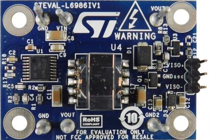 STMicroelectronics STEVAL-L6986IV1 ຕົວຄວບຄຸມແຮງໂຕລະຟັດ - ຕົວຄວບຄຸມສະຫວັດດີງ 38V, 5W ບອດທົດລອງຕົວແປງ iso-buck ຊີ້ນໂຄເນັດສະຫຼອງສອງຂອງອອບພຸດ, L6986I
