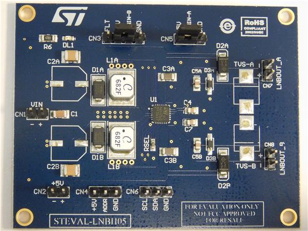 STMicroelectronics STEVAL-LNBH05 ບົດປະເມີນບົດບົດປະເມີນພາບພະລັງງານຂອງຕົວຄວບຄຸມແຮງແສງ - ຕົວຄວບຄຸມພາບພະລັງງານສະໄວສະເລີຍສໍາລັບ LNB ອີງຕາມ LNBH26S