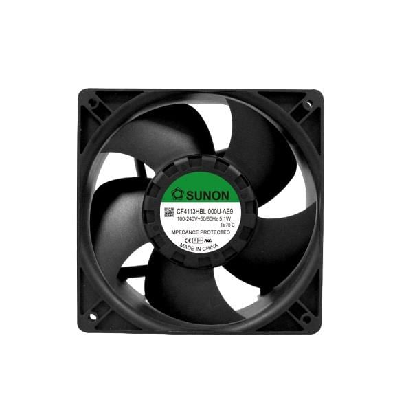 Sunon CF4113HBL-000U-AE9 ພັງລົມ Axial EC Axial, 120x120x38mm, 110-230VAC, 96.6/109CFM, ເລີ່ມຕົ້ນອັດຕະໂນມັດ, IP68 | EMIN.COM.LA