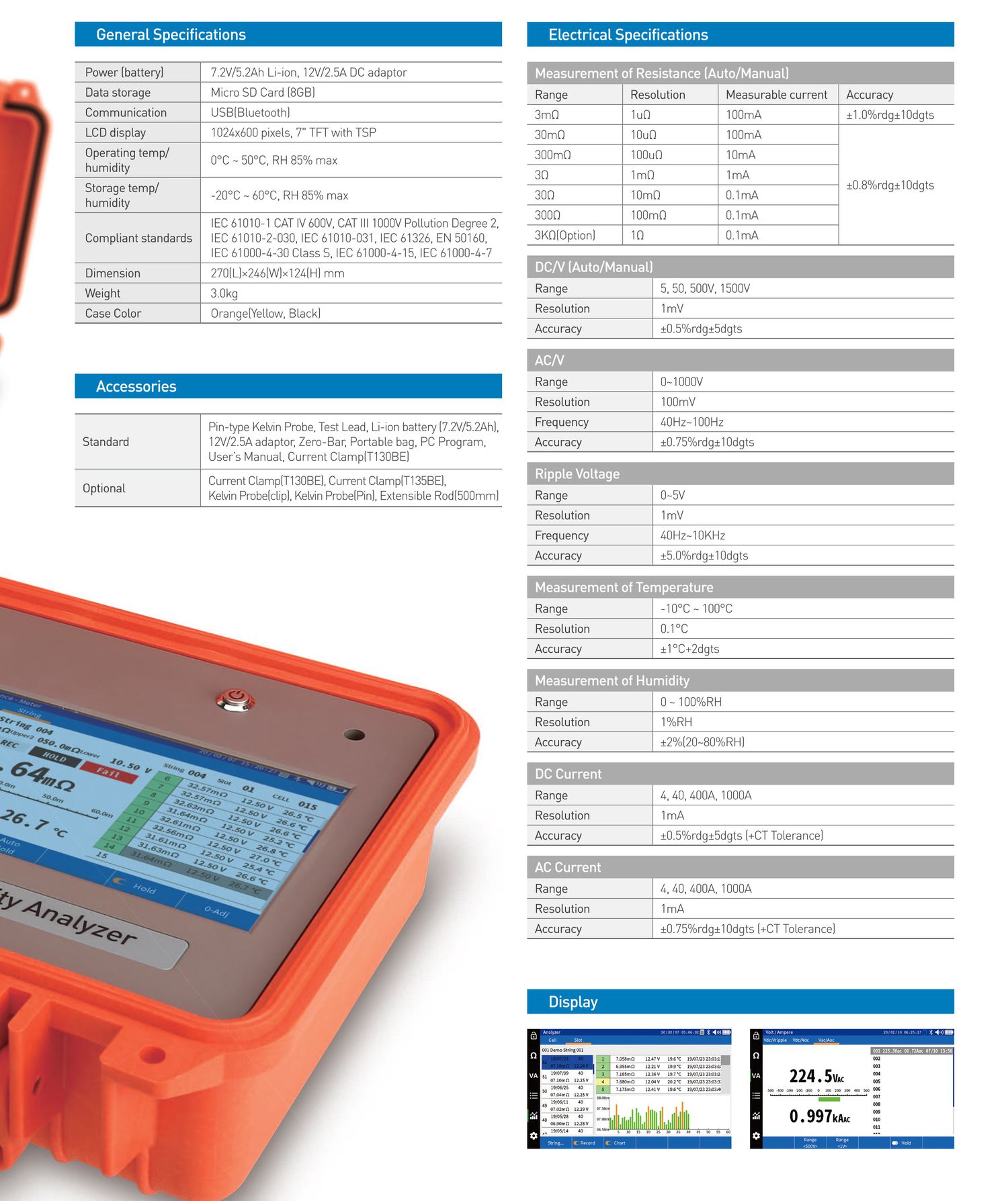 Measures internal resistance of 1500V max of batteries