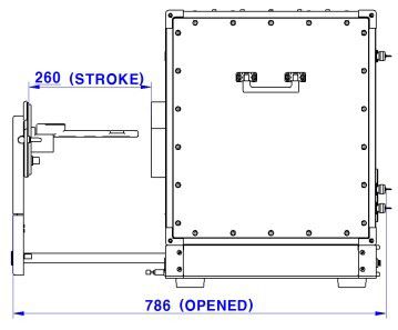 - Outside: 534(W) x 526(D) x 583(H) mm, door closed. 786(D) mm, door open