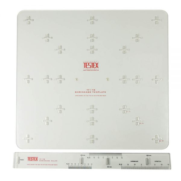 Shrinkage Template & Ruler is used to mark the origin size of the testing fabric and track its shrinkage status by the scale on the ruler, built with high-transparent acrylic makes this template ruler very easy to observe the dimension change and calculate the shrinkage scale and stretch scale. And it combines the different test standards in one template, including 500mm, 350mm, 250mm. Frame size is 610mm x 610mm; Shrinkage Scale is 0%~20%, and Stretch Scale is 0%~ 20%.