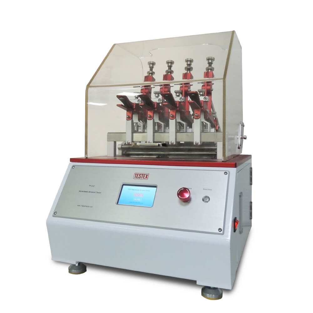 Wyzenbeek Abrasion Tester, a handy instrument to conduct the Wyzenbeek wear resistance test, in which fabrics being rubbed against a standard abrasive or a wire mesh screen with a backward and forward motion over a curved surface. Wyzenbeek abrasion tester applies to automotive and furniture industry fabric manufacturers working to US Standards Motor driven with 4 abrasion heads and electronic digital counter to control the number of cycles.