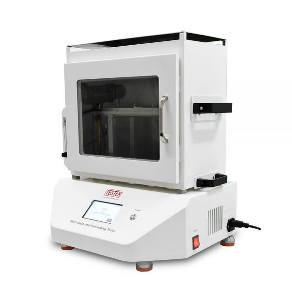 Horizontal Flammability Tester, to determine the comparative burn rates and burn resistance of textiles, particularly those for automotive interior use. Automatic igniter is equipped to ensure the horizontal flammability tester is safe and easy to operate, comprising draft free stainless steel cabinet with observation window, sample holder and door mounted burner.