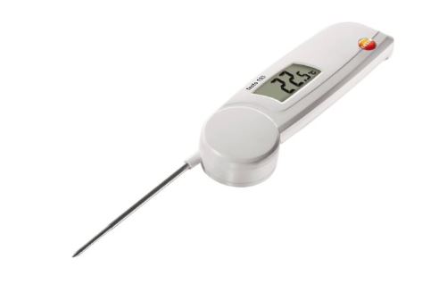 Whats up: testo 103 food thermometer with foldable temperature sensor, user guide, batteries.