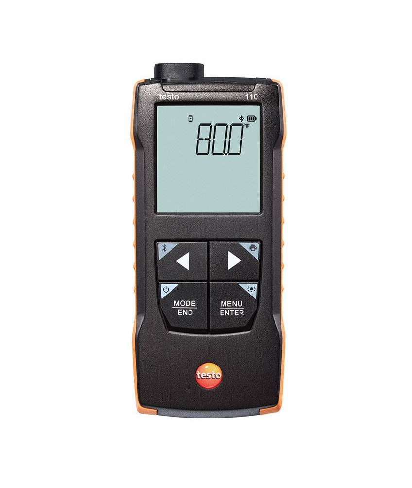 TESTO 110 ເຄື່ອງມືວັດແທກອຸນຫະພູມ NTC ແລະ Pt100 ດ້ວຍການເຊື່ອມຕໍ່ແອັບຯ (Pt100:-200 ~ +800 °C, NTC:-50 ~ +150 °C, with App connection)
