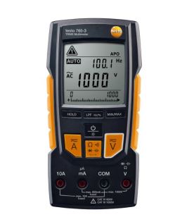 Include: testo 760-3 digital multimeter 1000 V with TRMS, capacitance, duty cycle, low pass filter, auto-test setup, and temperature measuring