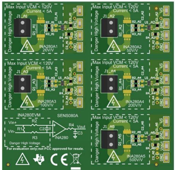 Texas Instruments INA280EVM ໂມດູນປະເມີນຄວາມຮູ້ສຶກກະວດກະວາງກະວດ INA280 | EMIN.COM.LA