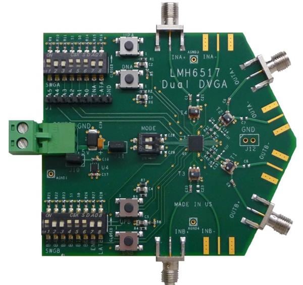 Texas Instruments LMH6517EVAL-R1/NOPB ແອມພລິຟາຍເພີ່ມກຳລັງປ່ຽນໄດ້ LMH6517 ແຜງທົດລອງ | EMIN.COM.LA