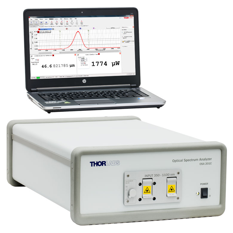 (e) In the 350 - 500 nm range, the OSA201C will easily detect lasers and other narrowband sources, but broadband sources may not have sufficient power spectral density to be detected.