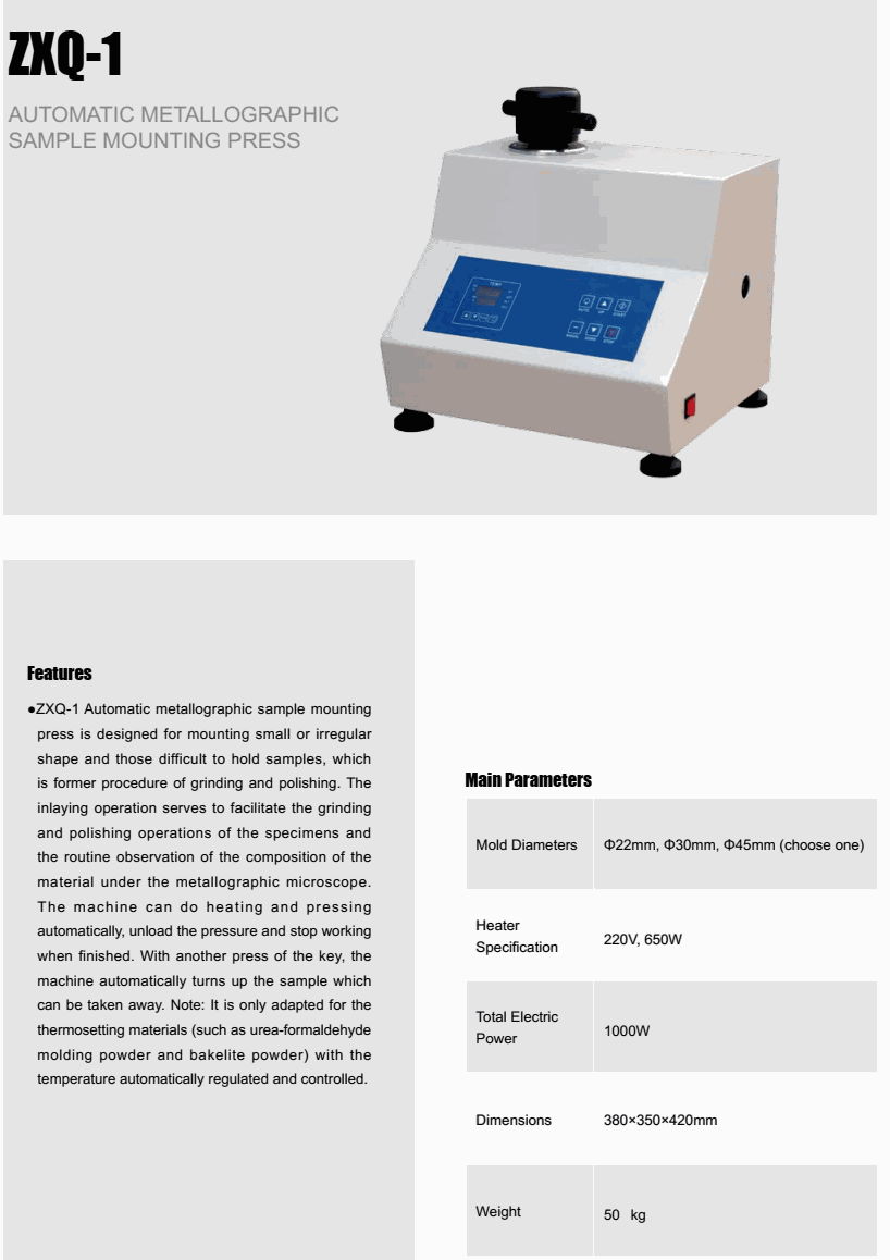 TIME ZXQ-1 Automatic Metallographic Sample Mounting Press (1000W) | EMIN.COM.LA