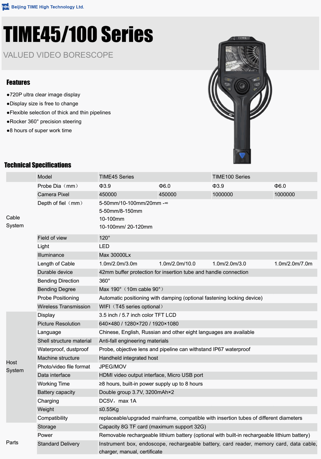 Waterproof, dustproof: Probe, objective lens and pipeline can withstand IP67 waterproof