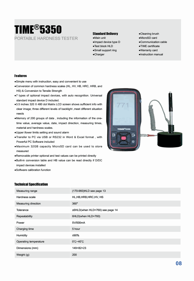 TIME 5350 ເຄື່ອງທົດສອບຄວາມແຂງແບບພົກພາ (Leeb; type D; 170-960 HLD) | EMIN.COM.LA