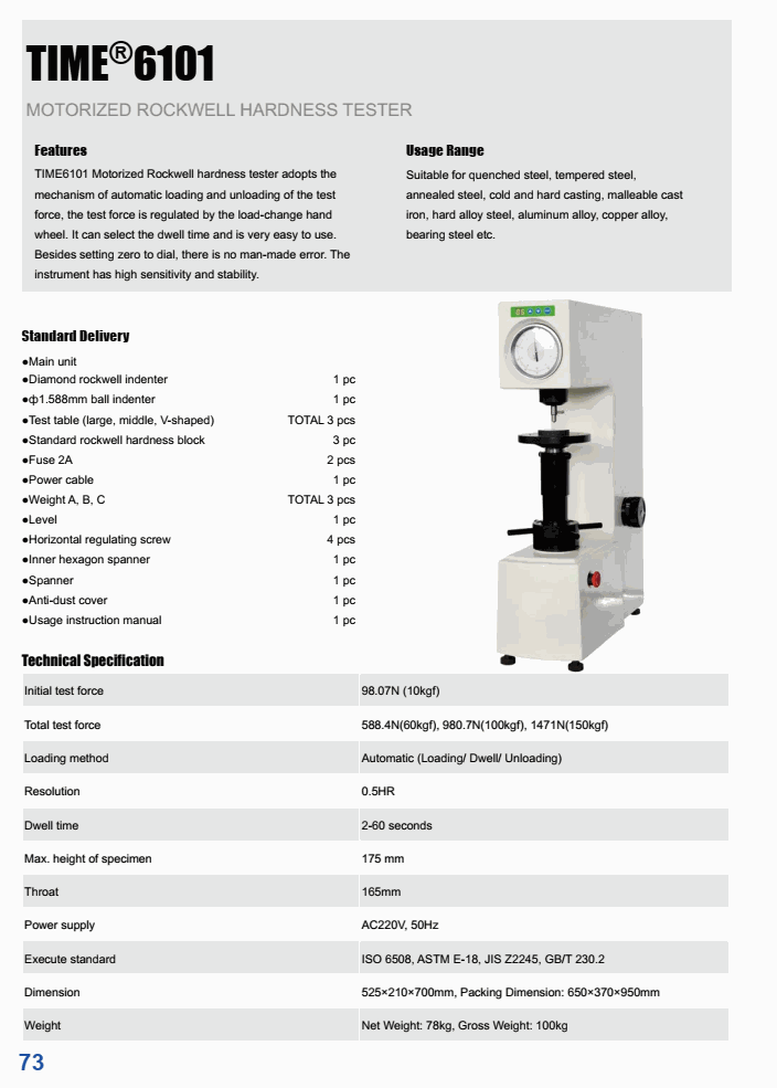Execute standard: ISO 6508, ASTM E-18, jIS Z2245, GB/T 230.2