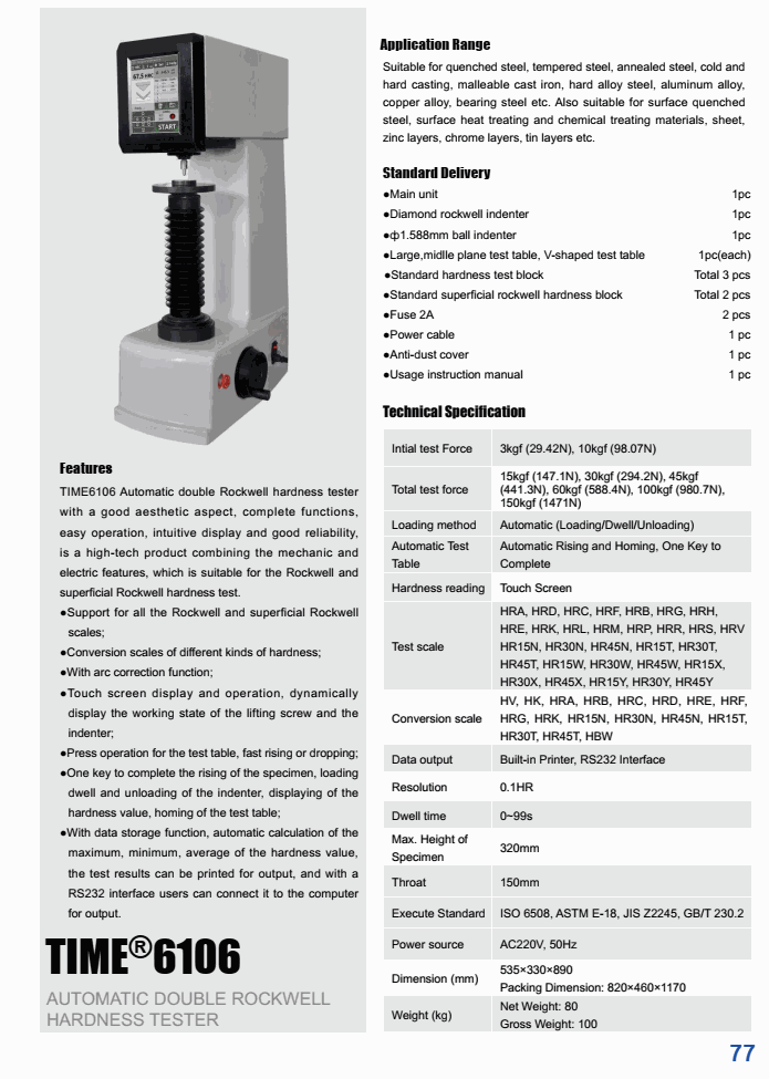 Execute standard: ISO 6508, ASTM E-18, jIS Z2245, GB/T 230.2