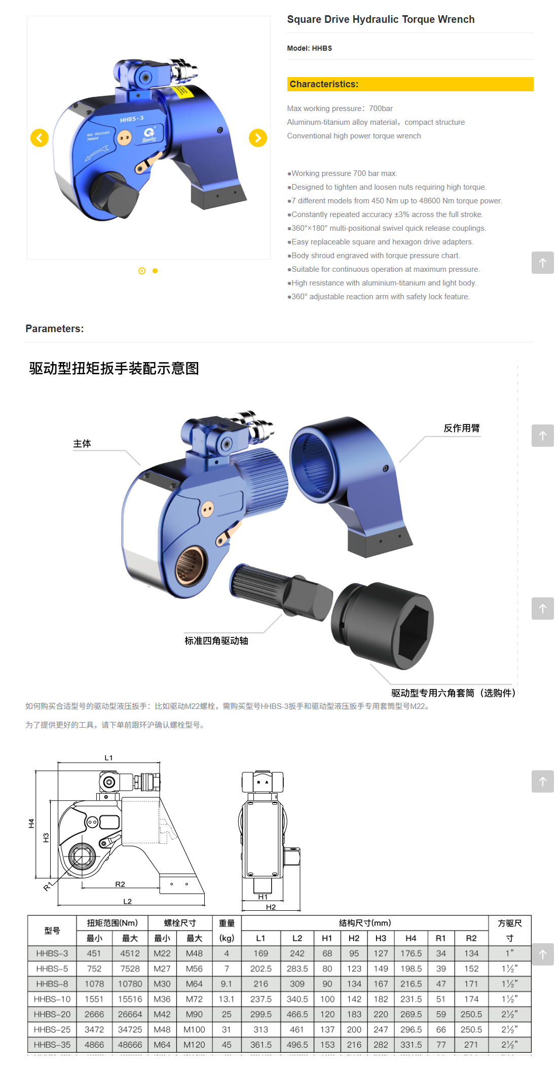TLP HHBS-10 Square Drive Hydraulic Torque Wrench (1551~15516Nm) | EMIN.COM.LA
