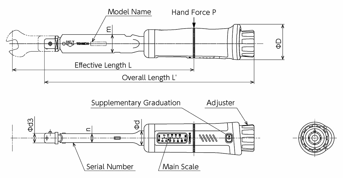 Tohnichi CL100IX8D ປະເພດຄລິກທີ່ສາມາດປັບໄດ້ Torque Wrench (20~100 lbf・in) | EMIN.COM.LA