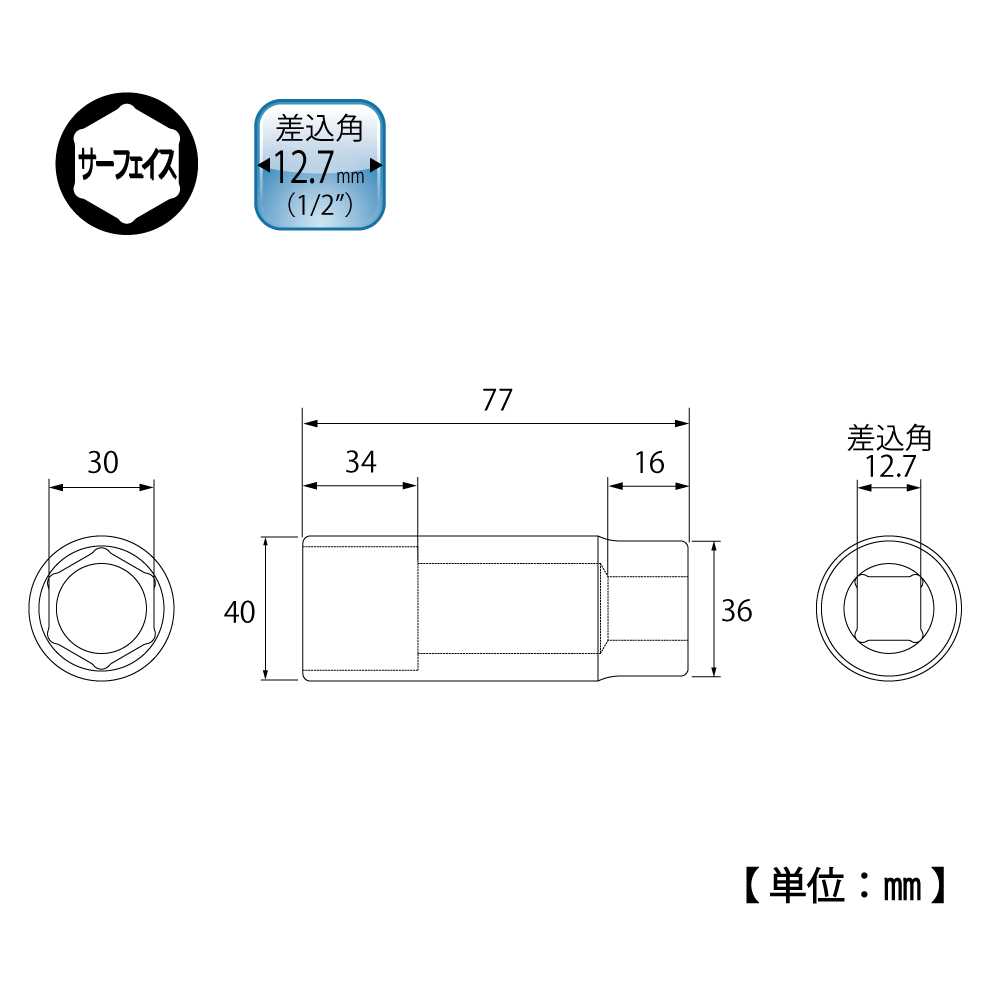 TOP Kogyo DS-430 Surface Deep Socket (1/2", 30mm) | EMIN.COM.LA